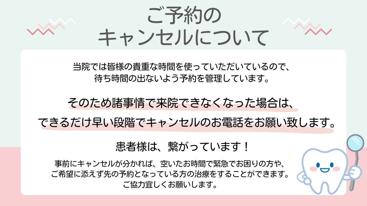 みなさまの持たれる歯科医院のイメージは「痛い」「恐い」「音が不快」などネガティブなものが多いと思います。確かに治療上避けられないことも多々あります。ではそれを少しでも軽くする方法はないかを考えた場合、「知ってもらう」ことがとても重要なことではないでしょうか。例えば病状であったり、これからどんな風に治療をすすめていくのか、期間、費用などを知って頂きたいのです。
